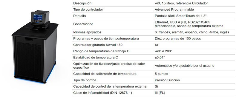 Mantiene temperaturas con una estabilidad de ±0,01°C. Muestra la temperatura real del baño con una resolución de temperatura de 1/1000° y tendencias de temperatura desde 4 minutos hasta 10 días. Para lograr un rendimiento más preciso, el controlador Advanced Programmable ofrece un ajuste preciso avanzado de fluidos, valor promedio de la temperatura configurable por el usuario en la pantalla y control de la temperatura de una aplicación externa