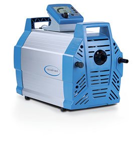 Las bombas de membrana versión química de tres etapas son una solución excelente para hacer vacío en vapores y gases corrosivos, alcanzando altos requerimientos. Las bombas de tres etapas proporcionan la ventaja de una alta capacidad de aspiración y un alto vacío final. Todas las partes en contacto con el medio están fabricadas en plásticos fluorados resistentes químicamente. Membranas en PTFE para incrementar la vida de la bomba. La MD 4C NT con válvula de gas ballast, está preparada de forma óptima para vapores fácilmente condensables debido a su muy buen vacío final (incluso con gas ballast) incluso con disolventes de alto punto de ebullición. La nueva serie NT mejora las características técnicas y una mayor tolerancia al vapor de agua.
