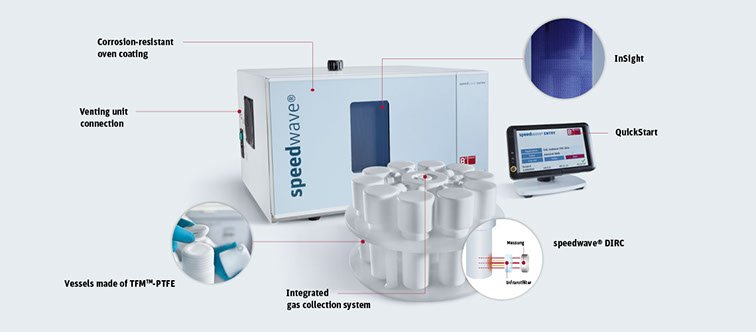 Speedwave Entry es especialmente apto para el uso flexible en laboratorios gracias a sus dimensiones. La combinación de un diseño con dimensiones reducidas y un sencillo manejo hacen que sea especialmente interesante para usarse en los ámbitos de los análisis rutinarios, la formación y los estudios.