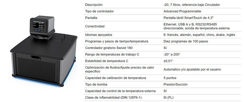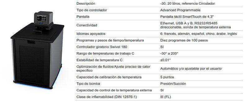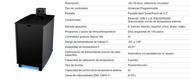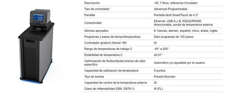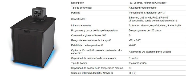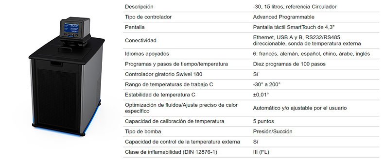 Mantiene temperaturas con una estabilidad de ±0,01°C. Muestra la temperatura real del baño con una resolución de temperatura de 1/1000° y tendencias de temperatura desde 4 minutos hasta 10 días. Para lograr un rendimiento más preciso, el controlador Advanced Programmable ofrece un ajuste preciso avanzado de fluidos, valor promedio de la temperatura configurable por el usuario en la pantalla y control de la temperatura de una aplicación externa