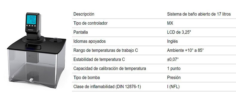 Una opción económica para aplicaciones rutinarias de laboratorio, el controlador de temperatura MX suministra una circulación potente junto con una estabilidad de temperatura de ±0,07°C.