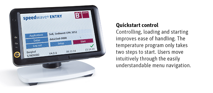 Speedwave Entry es especialmente apto para el uso flexible en laboratorios gracias a sus dimensiones. La combinación de un diseño con dimensiones reducidas y un sencillo manejo hacen que sea especialmente interesante para usarse en los ámbitos de los análisis rutinarios, la formación y los estudios.